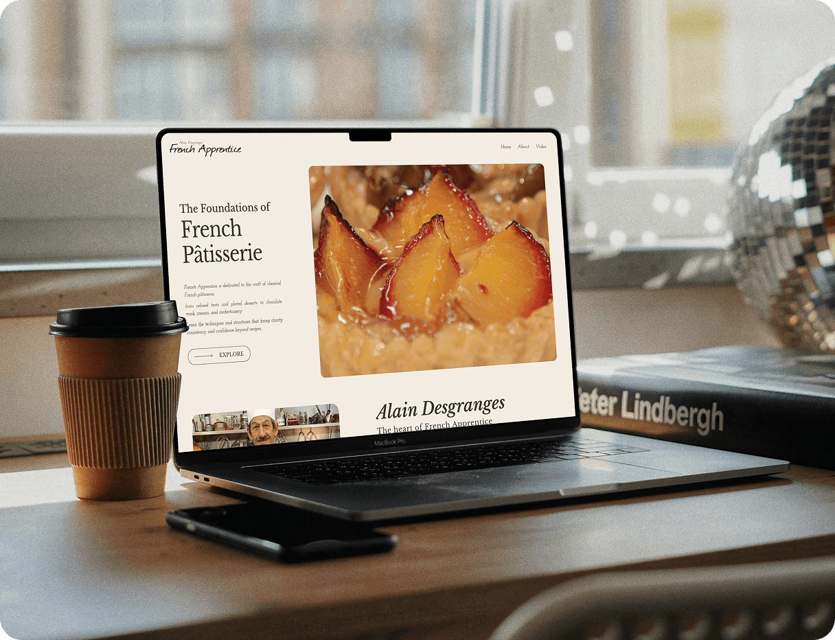 French Apprentice is a website dedicated to the artistry of traditional French pâtisserie. This project focuses on translating the warmth, precision, and heritage of pastry-making into a calm and elegant digital experience.