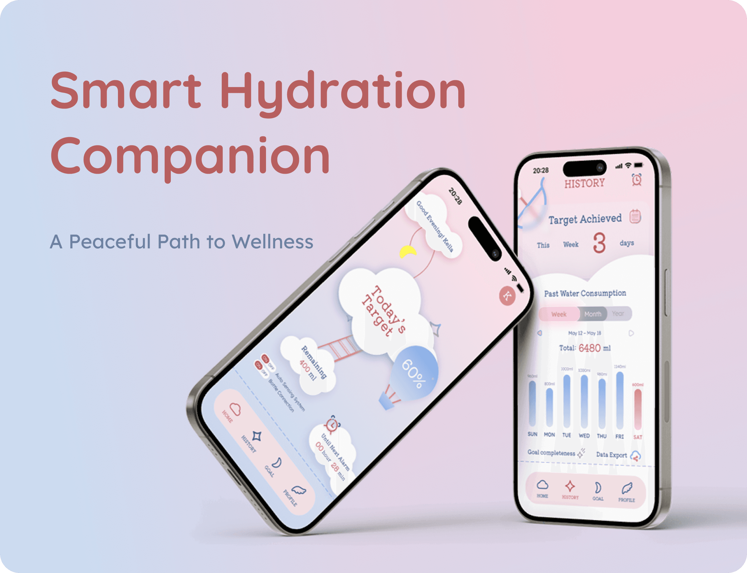 This smart hydration app H2OSync merges functionality with a dreamy, calming aesthetic, making hydration tracking effortless and soothing.